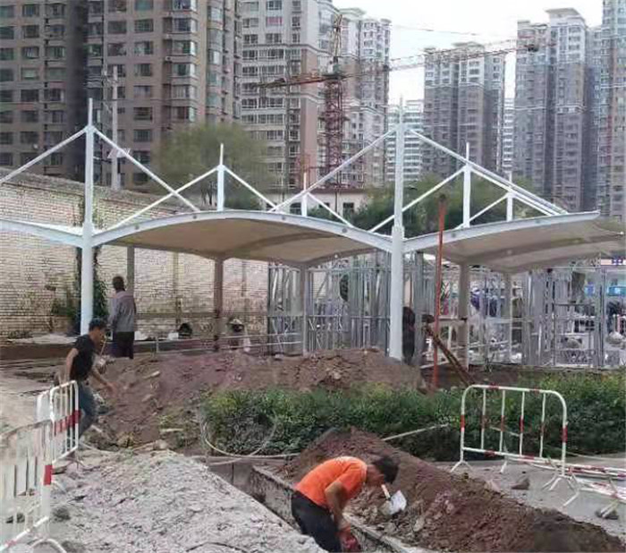 膜片的裁剪、钢索及钢结构等的制作均在工厂完成,减少现场施工时间,可与下部钢筋混凝土结构或构件等同时进行,避免施工交叉,在施工现场只是钢索、钢结构及膜片的连接安装定位及张拉的过程,故现场施工安装、迅速快捷,相对传统建筑工程工期较短。