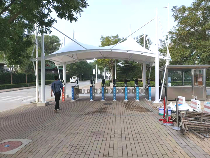 膜材料具有的阻燃性和耐高温性,能很好地满足防火要求;膜结构属柔性结构,能够承受很大的位移,不易整体倒塌;膜结构自重轻,抗震性能比较好。